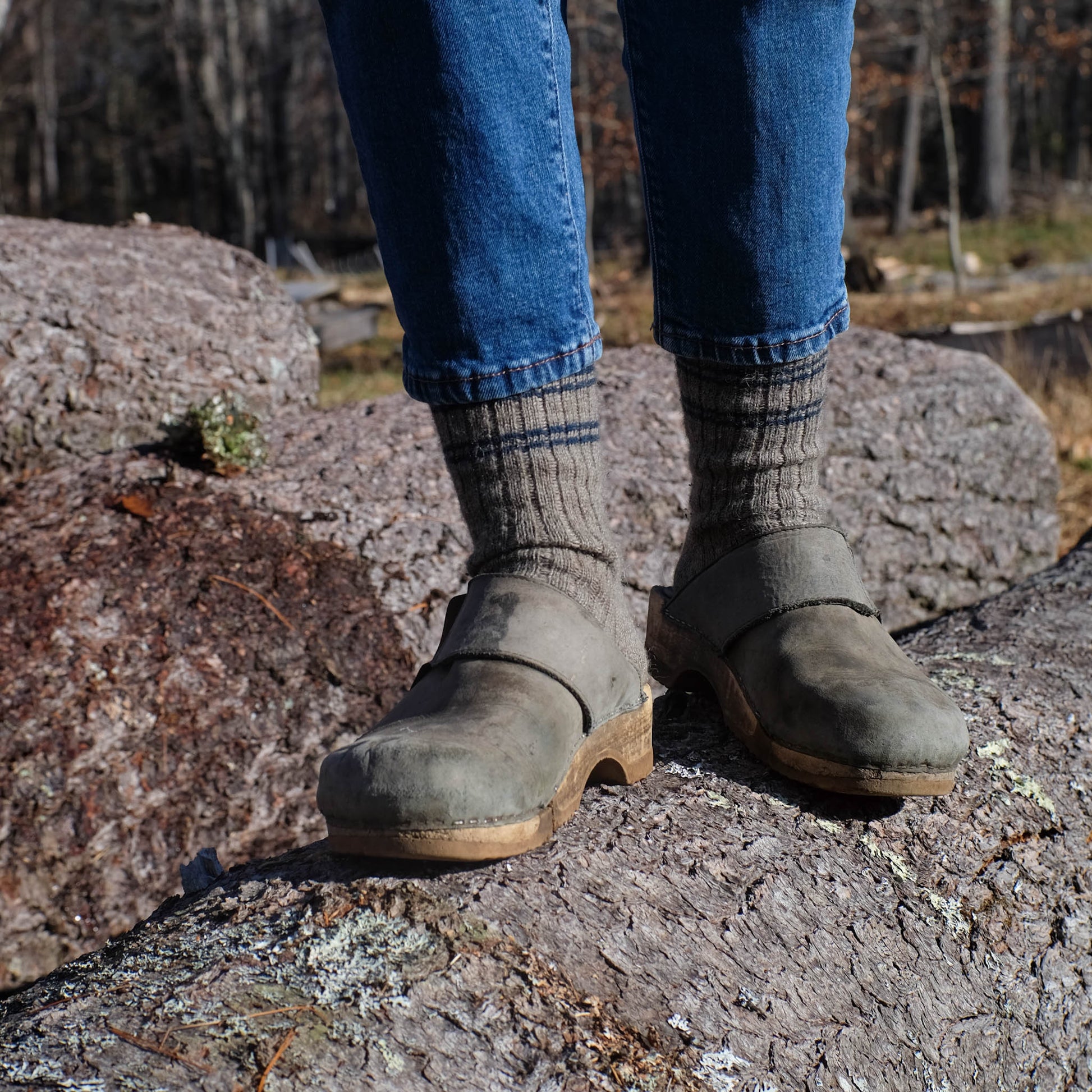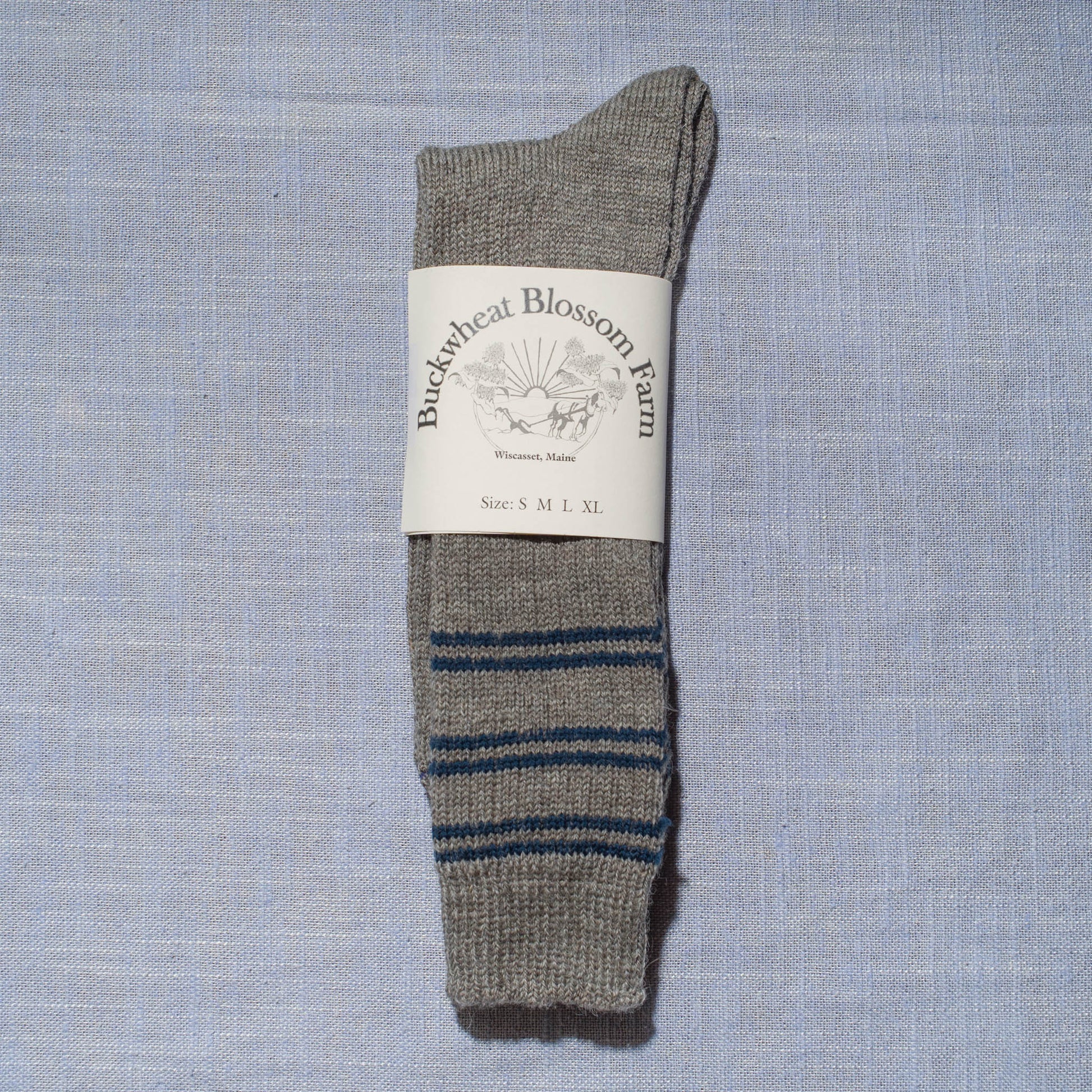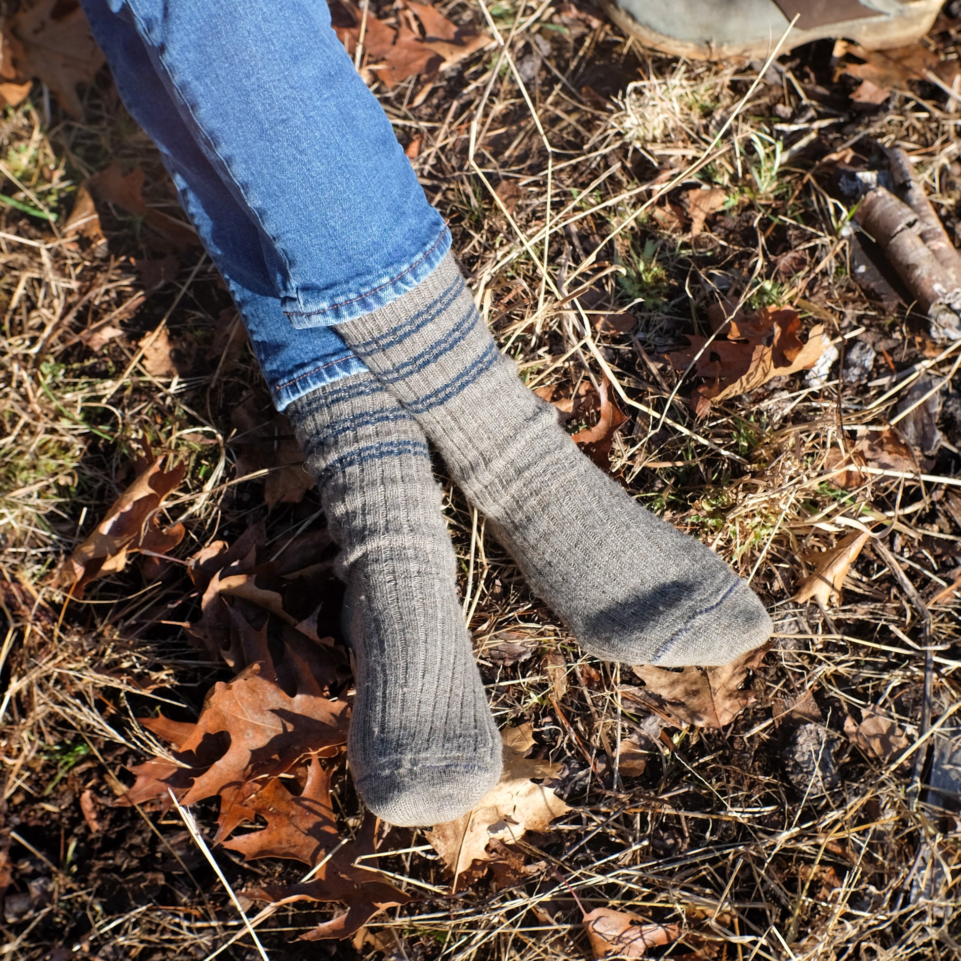 Quality and Durability: We carefully hand-pick the wool that goes into our Farm Socks. All the wool is from our farm and other Maine Farms whose sheep Jeff shears, ensuring the sheep are well-cared for and the wool is of a high quality. The socks have 15% nylon added to the wool for durability and elasticity.