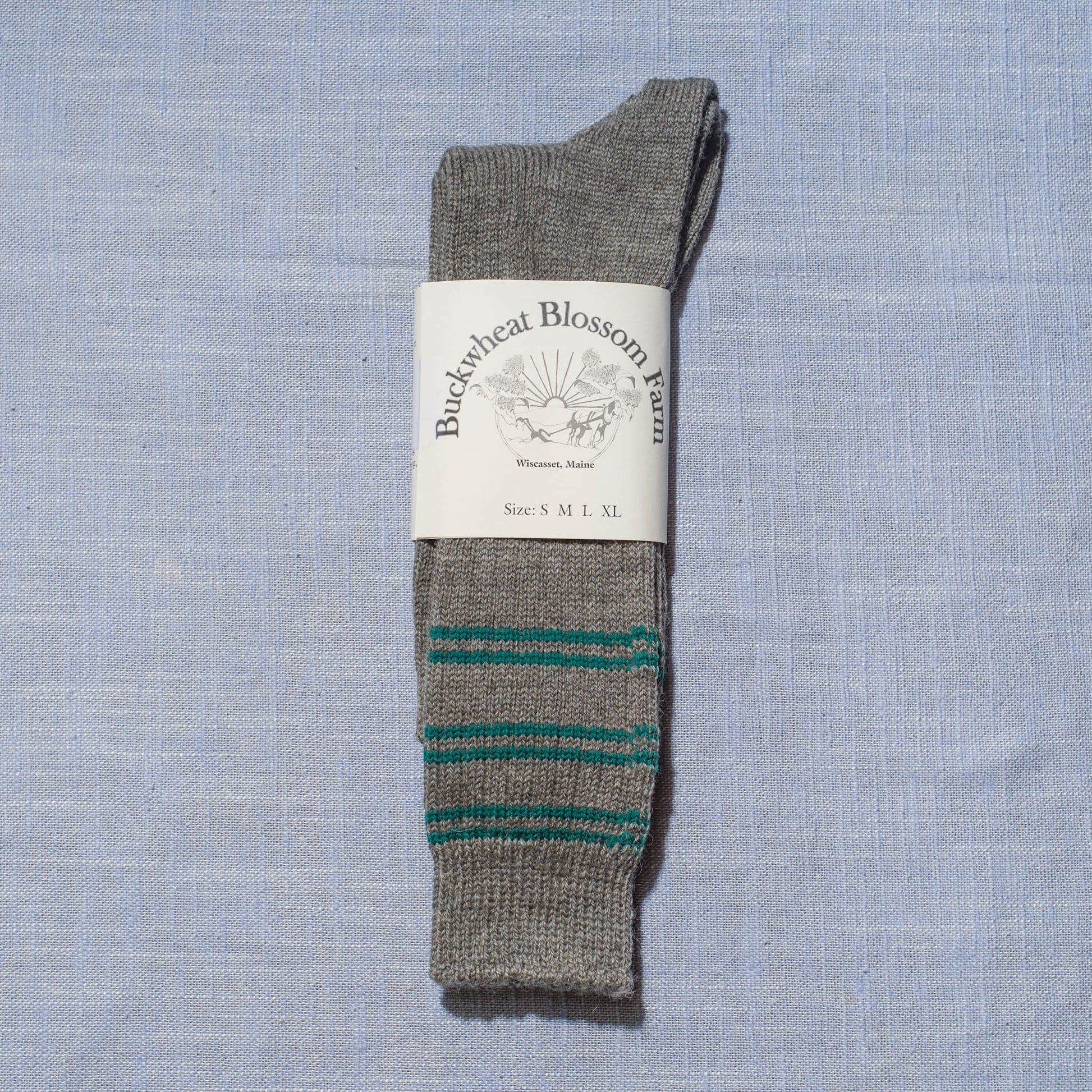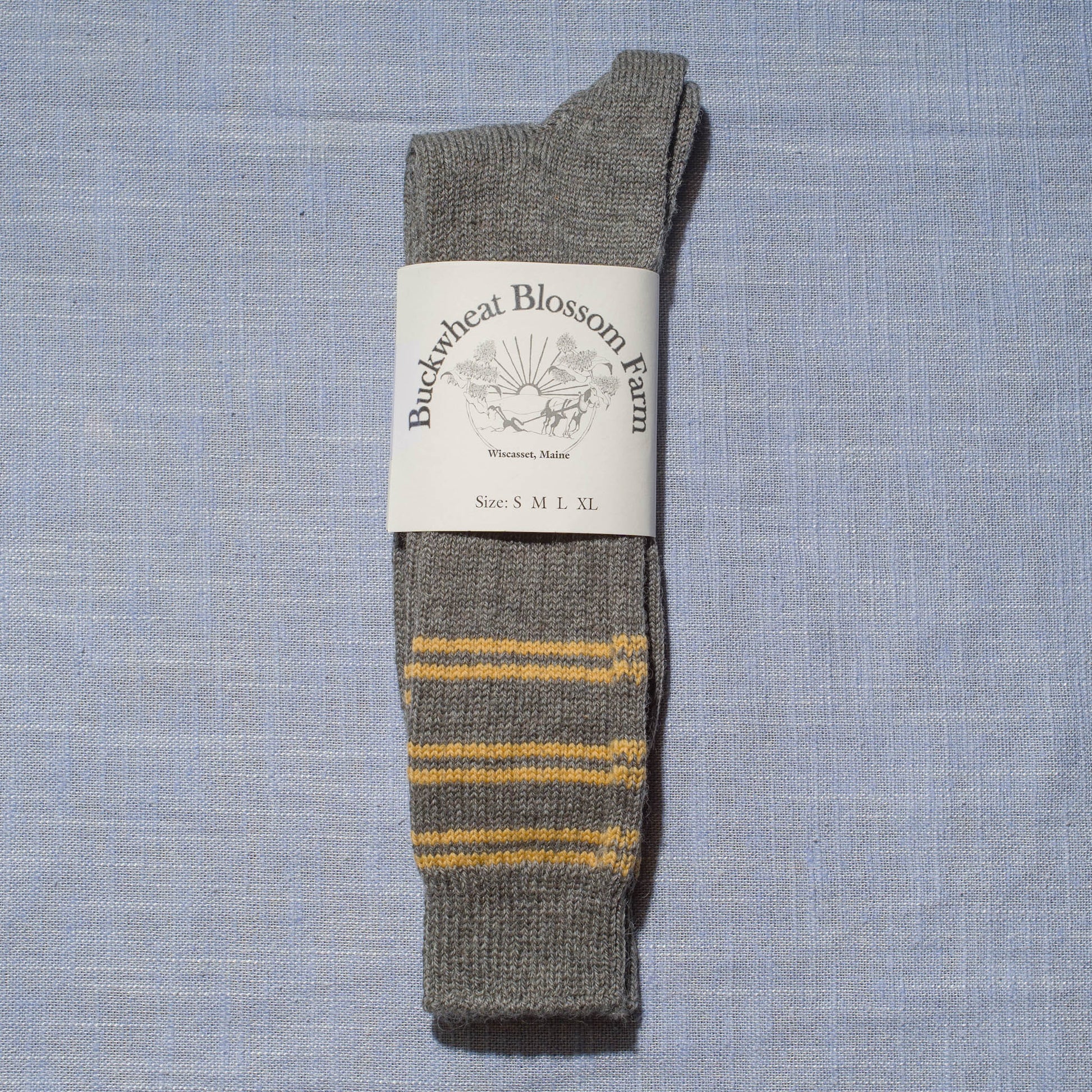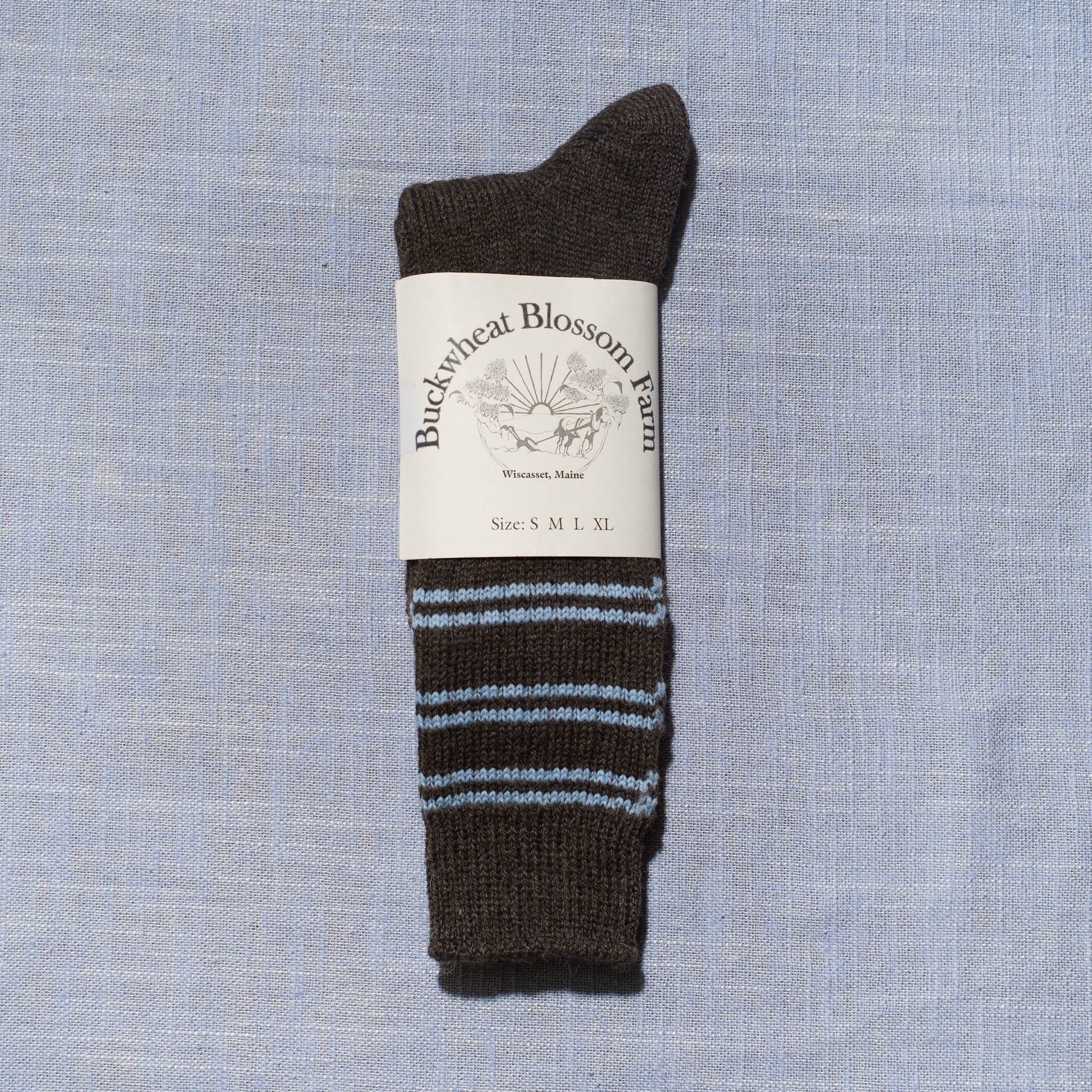 Quality and Durability: We carefully hand-pick the wool that goes into our Farm Socks. All the wool is from our farm and other Maine Farms whose sheep Jeff shears, ensuring the sheep are well-cared for and the wool is of a high quality. The socks have 15% nylon added to the wool for durability and elasticity.