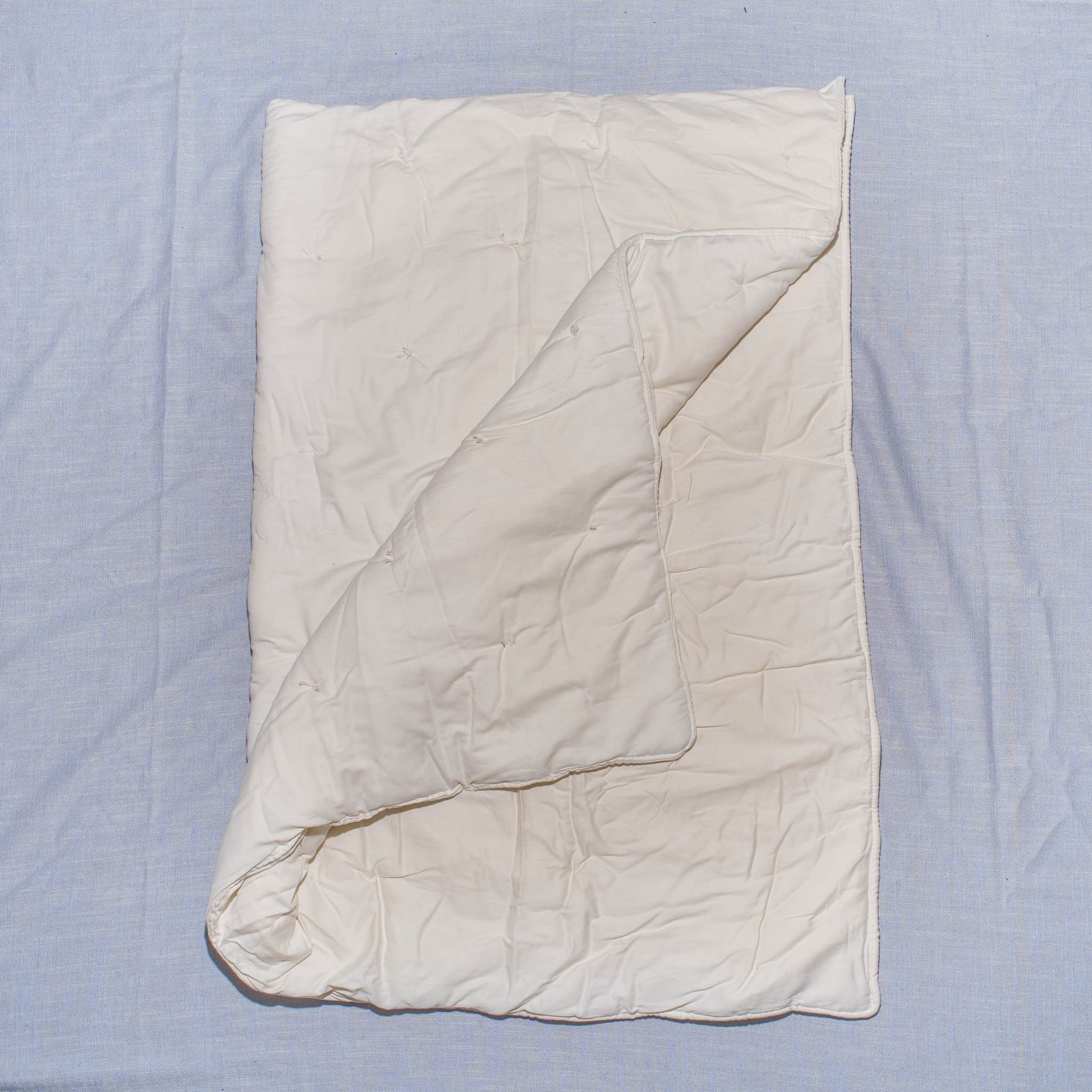 Wool is by far the ideal material for bedding. Because wool “breaths”, readily taking on and releasing moisture, it is naturally mold and mite free. It’s breathability also helps to moderate your body temperature, not just keep you warm. Our family has our wool comforters on our beds year-round. Wool is also naturally flame resistant (some conventional bedding contains chemical flame retardants! Yuck!) Although each wool comforter comes with hand washing instructions, it is ideal to protect it with a comforter cover, then simply air it out in the sun annually.